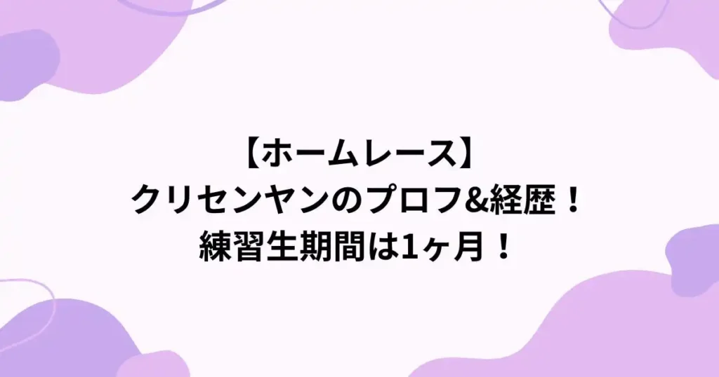【ホームレース】クリセンヤンのプロフ&経歴!練習生期間は1ヶ月!