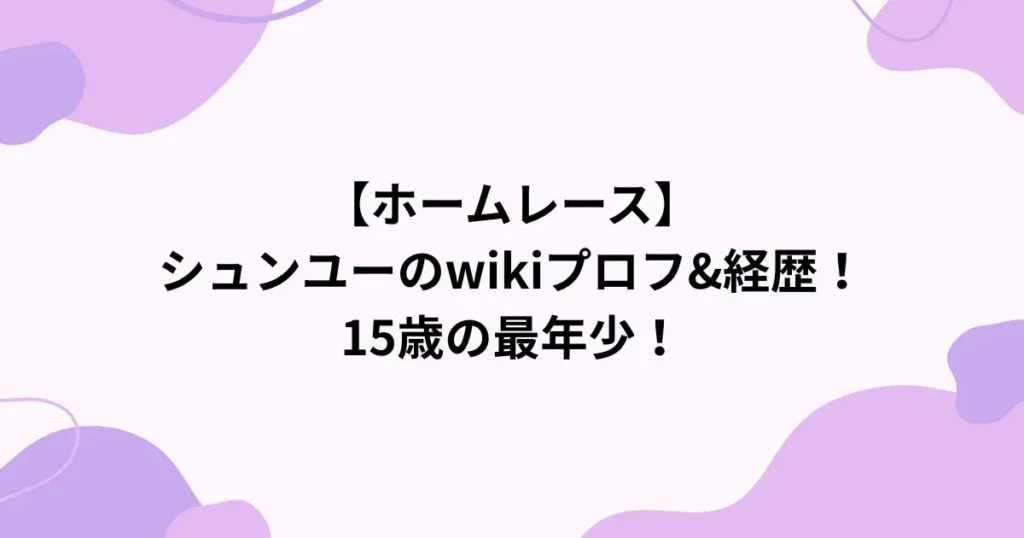 【ホームレース】シュンユーのwikiプロフ&経歴!15歳の最年少!