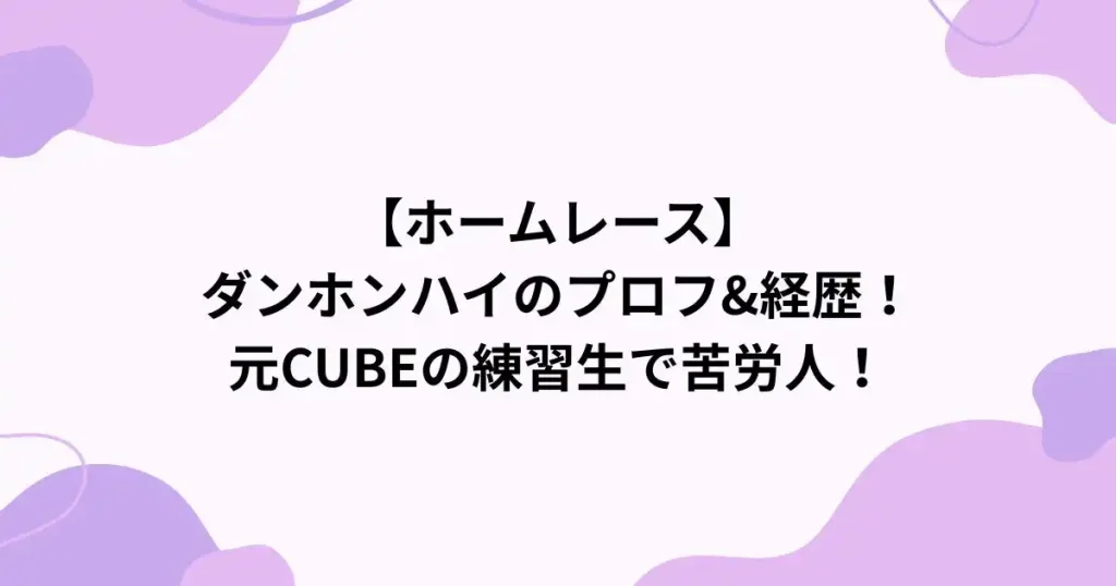 【ホームレース】ダンホンハイのプロフ&経歴!元CUBEの練習生で苦労人!