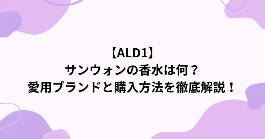 【ALD1】サンウォンの香水は何?愛用ブランドと購入方法を徹底解説!