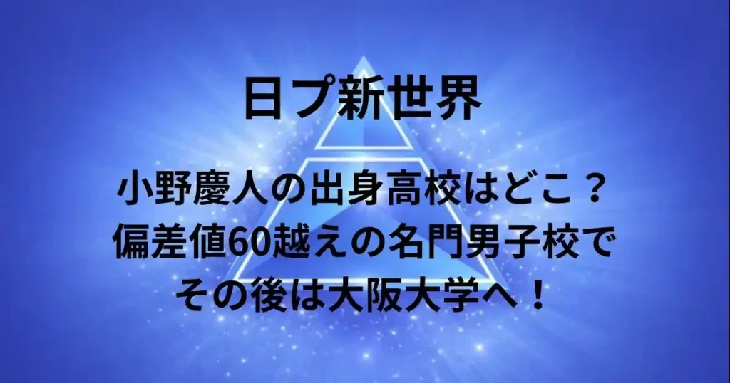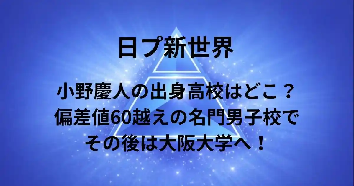 小野慶人の出身高校はどこ?偏差値60越えの名門男子校でその後は大阪大学へ!