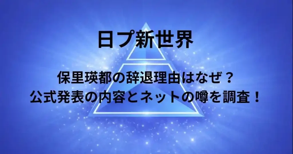 2026年2月22日、日プ新世界からデビュー候補として期待された保里瑛都さんの突然の辞退が発表されました。 放送開始前という衝撃的なタイミングに、SNSでは驚きと「なぜ?」という心配の声が溢れています。 本記事では、公式発表の内容を整理し、ネットで... -