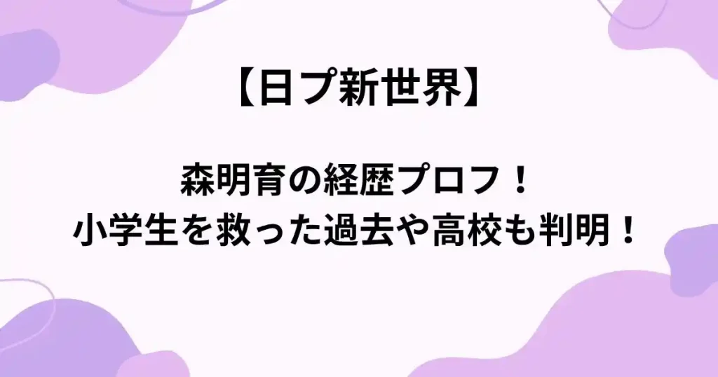 【日プ新世界】森明育の経歴プロフ!小学生を救った過去や高校も判明!