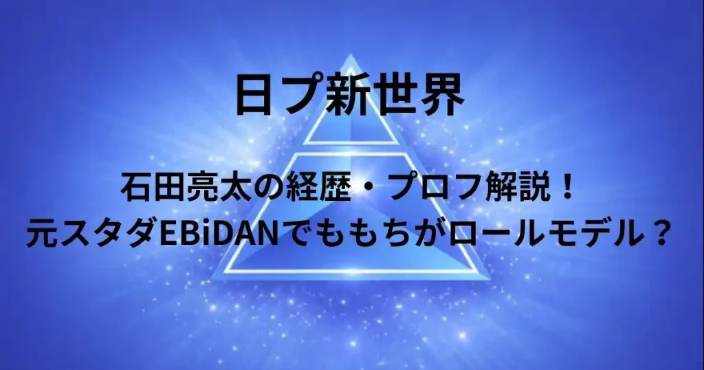 日プ新世界で、その圧倒的なキャラクターと確かな実力で注目を集めているのが石田亮太さんです。 1分PR動画での「天下を取りに来ました」という力強い宣言や、元スターダストプロモーション(スタダ)出身という経歴に驚いた方も多いのではないでしょうか... -
