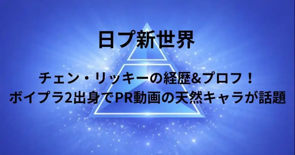 日プ新世界に出演し、その圧倒的なビジュアルと明るいキャラクターで注目を集めているのが、台湾出身のチェン・リッキーさんです。 「このイケメンは一体何者?」「過去にどんな番組に出ていたの?」と気になっている方も多いのではないでしょうか。 実は... -