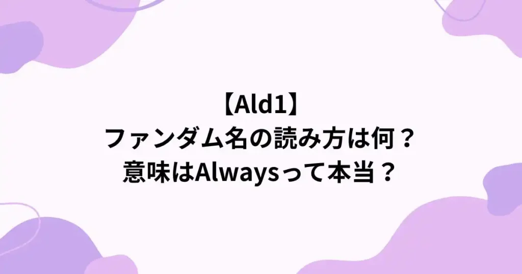 【Ald1】ファンダム名の読み方は何?意味はAlwaysって本当?